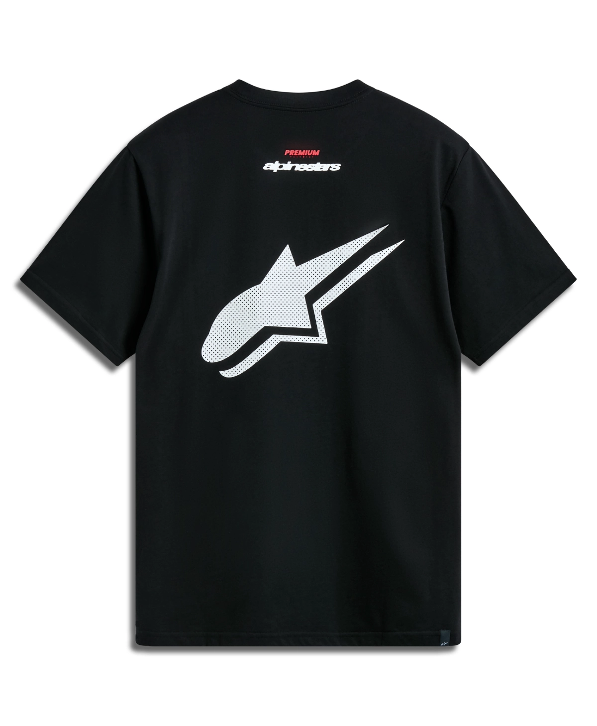 • Printed Cut and Sew Fit Tee • Front Ageless logo, back arc Alpinestars word. • Soft hand print • Internal neck print, external labeling.