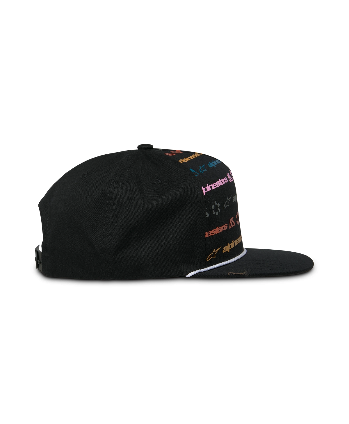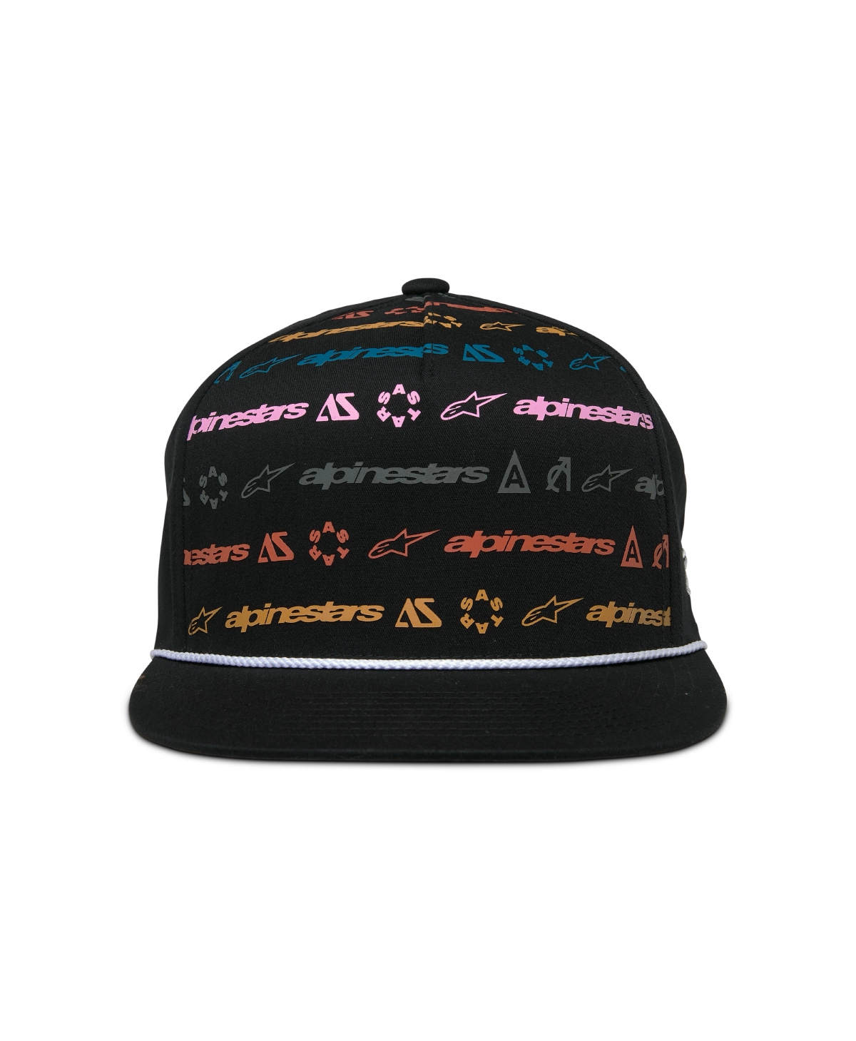 • Flat bill with structured crown • Snap back • Twill main fabric • Front multi logo print, side flat emboidery logo. Rope trim at bill. • Internal and back labeling