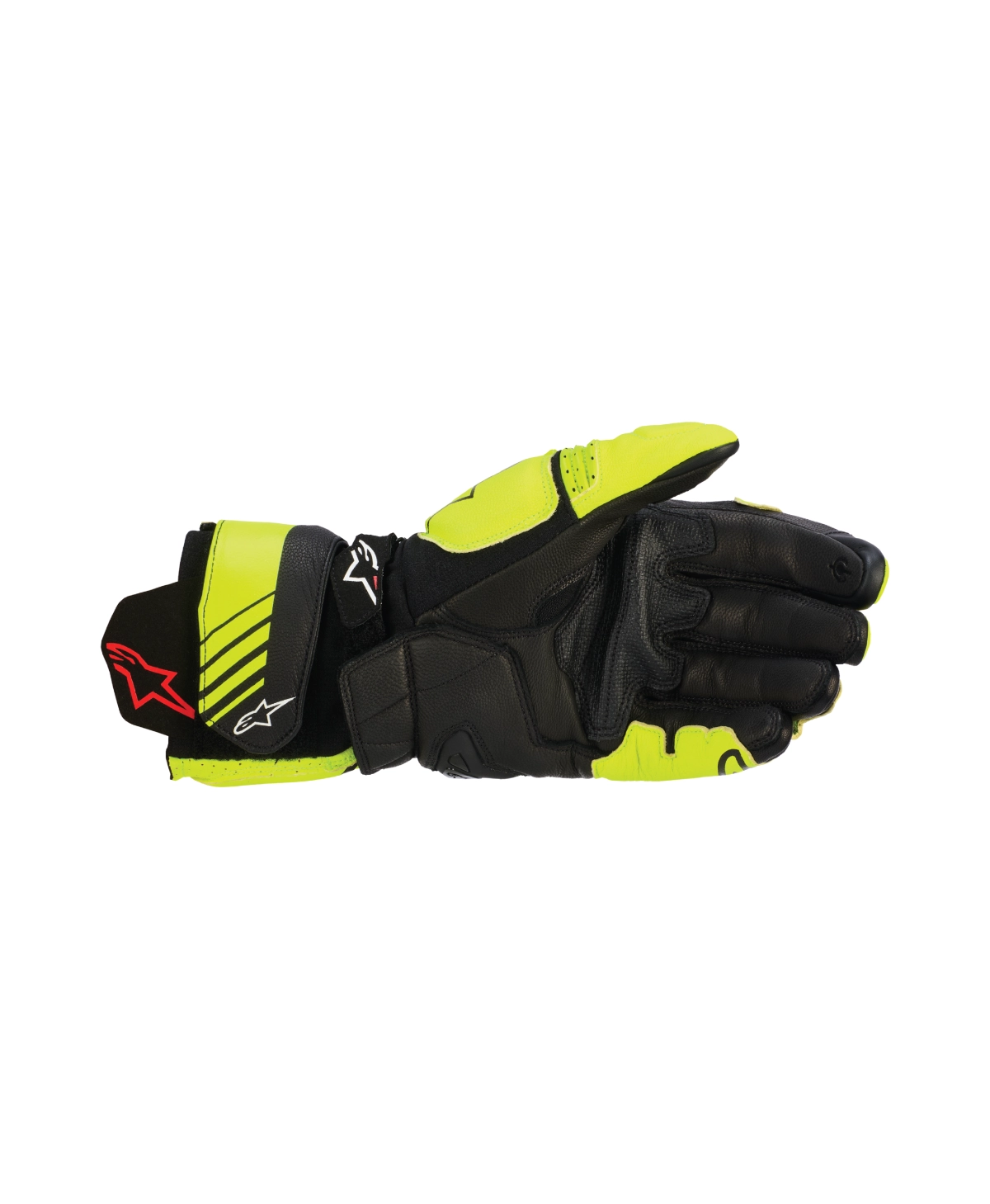 The GP PLUS R v3 Gloves have been optimized for enhanced racing performance and track versatility, and feature new knuckle protectors and a full leather palm and top hand forsuperior abrasion resistance. The aramid stretch fabric cuff, derived from Alpinestars' premium Supertech Racing Gloves, provides a secure and comfortable fit, while the leather palm reinforcement enhances durability and safety. With a pre-curved design and racing-derived finger bridge, these gloves offer optimal ergonomics and control on the track