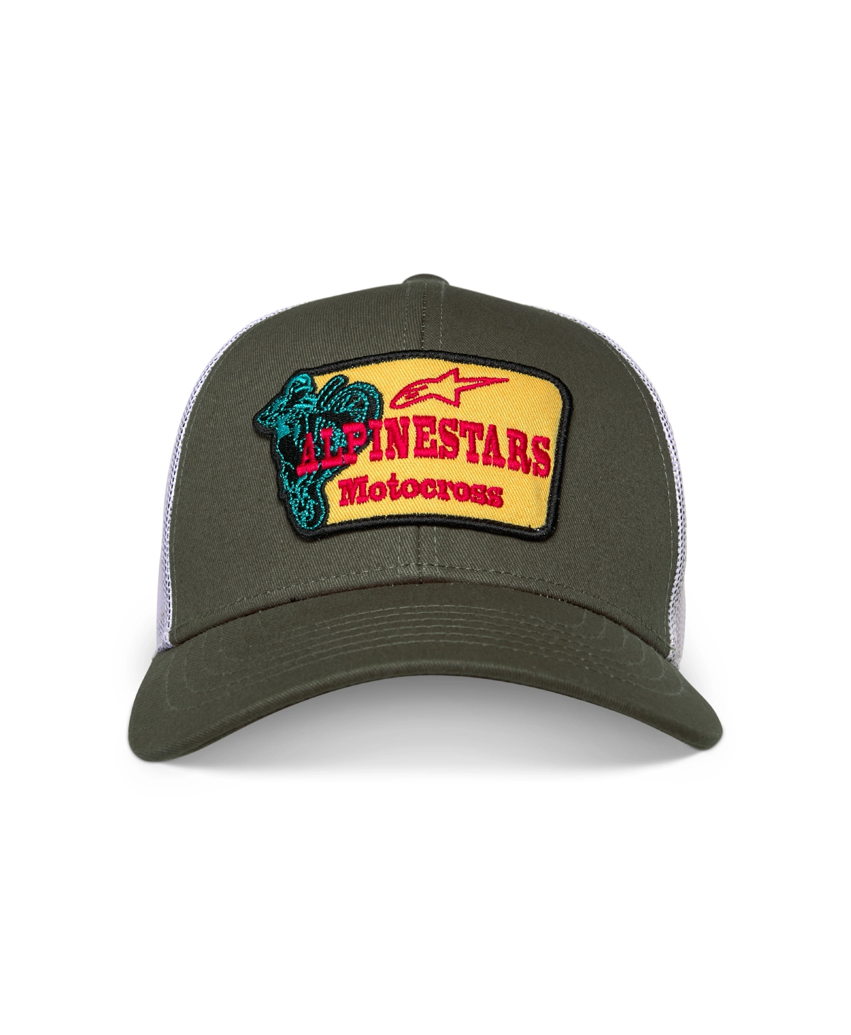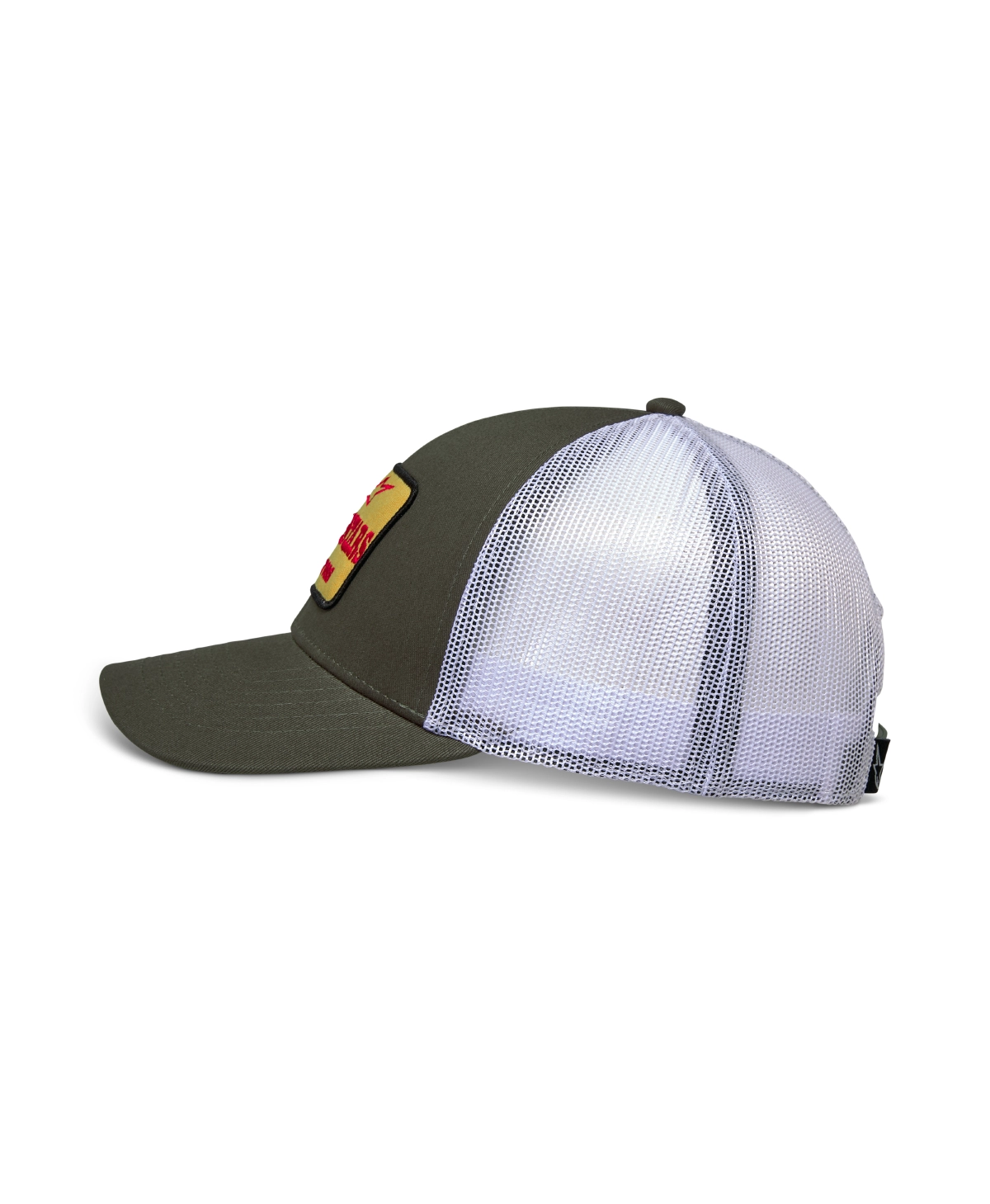 • Curve bill with structured crown • Snap back • Twill front fabric, poly mesh back • Front merrow edge twill embroidery patch • Internal and back labeling