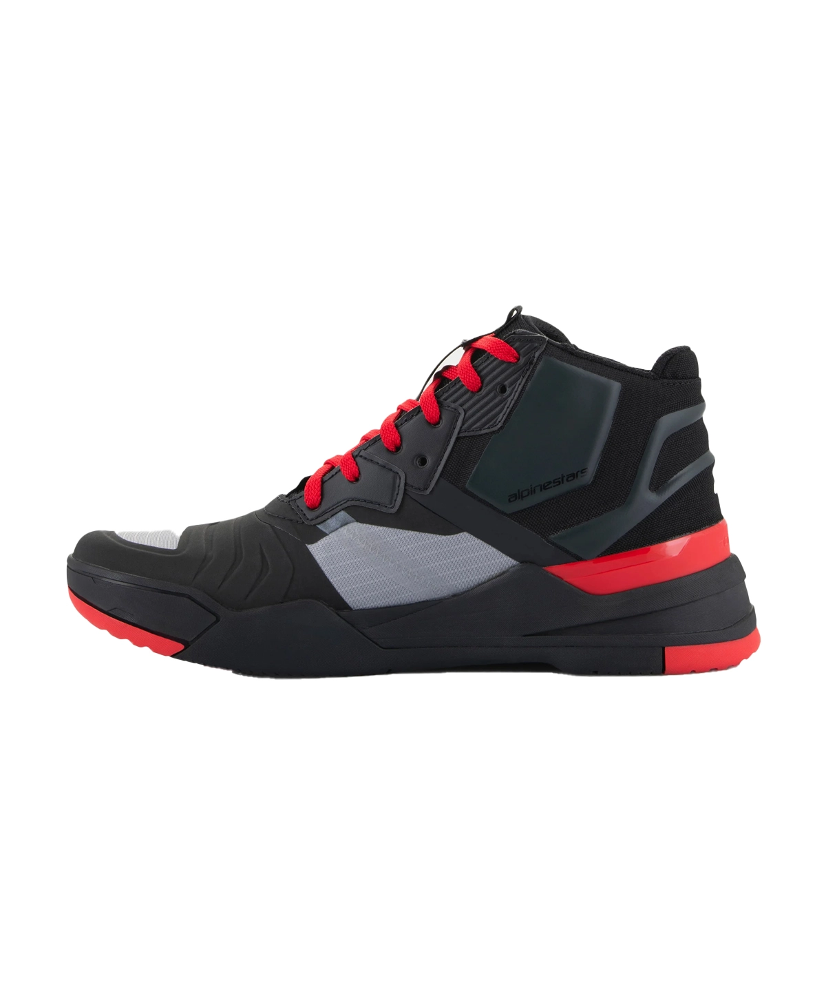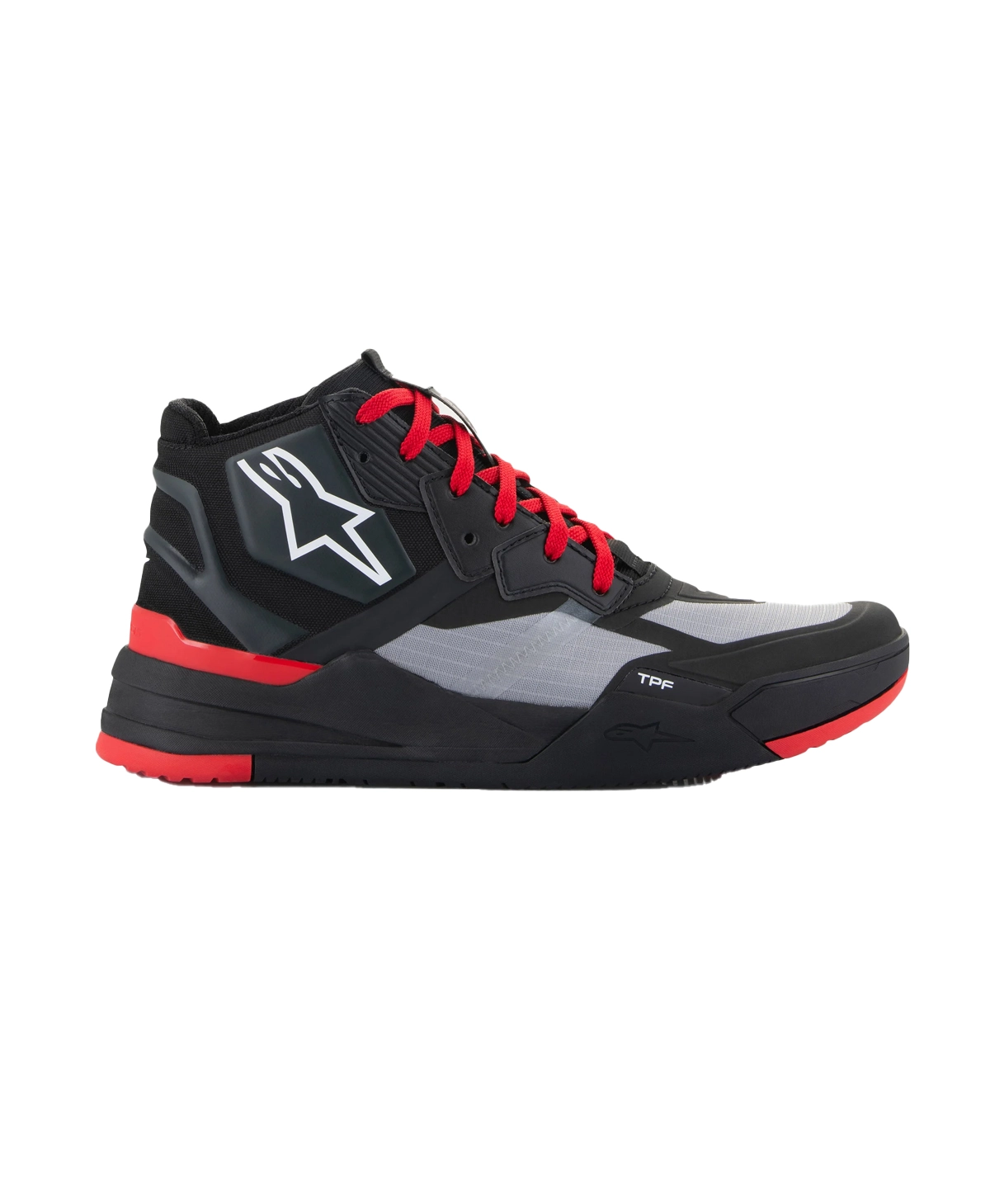 Inspired by popular trends, the Speedflight Performance Riding Shoe take street, sport-styled sneakers and infuse engineered riding protection to create the perfect motorcycling shoe. The comfortable Speedflight Shoes are the perfect choice for short rides and commuting, while super easy to wear every day, all day long. Constructed from a performance ripstop upper with seamless reinforcement panels and a molded, semi-rigid heel piece with injected foam, the Speedflight Shoes have an advanced and lightweight main chassis. Reinforcing the shoe is the Alpinestars TPF Transversal Protection Frame midsole which is sandwiched between a dual density rubber sole with front protective walls, a comfort layer, and the EVA durable yet comfortable midsole with lateral stabilizers. Also incorporated into the sole is an asymmetric TPU heel counter for added protection and stability, plus an OrthoLite® removable insock for great breathability and all-day walking comfort. The sole itself also features a more “aggressive” 10mm drop, meaning the height difference between the rider’s heel and toes, allowing for great walking comfort off the bike. Altogether, between the front to back drop, compressed EVA midsole, and high sidewalls, the Speedflight provides a “cradled” fit and enhances foot stability for walking comfort, as well as riding protection and confidence.