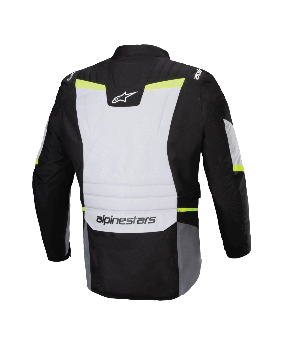 • Modern shoulder design with Alpinestars branding for an adventure touring look. • Comfort fit with pre-curved arms and ergonomic elbows for freedom of movement. • Two slim and ergonomic front cargo pockets with expansion for added storage and utility, 1 lower back cargo pocket, 1 zippered chest pocket, and 2 inner mesh pockets (one of the inner pockets is waterproof); pockets provide versatility and the safe and secure storage of valuables, and personal items. • Sleeve volume adjusters with press buttons on the biceps, hook and loop collar, cuff, and waist adjusters, provide for a nice, tailored fit. • Extended cut on the back for greater coverage in the riding position. • Detachable thermal liner (80g torso, 80g sleeves) with snap button connections, storable in the lower back cargo pocket for versatility. • Pant connection zipper for a secure fit and the prevention of wind ingress. • Made with PFAS chemicals