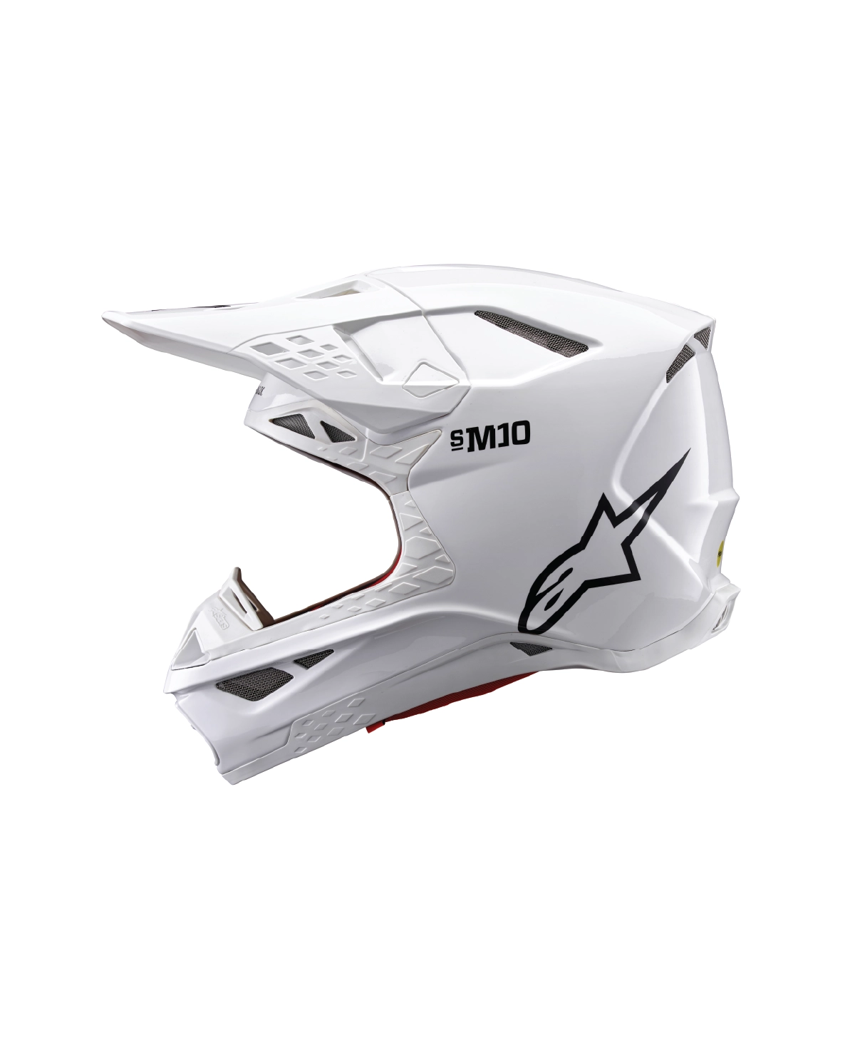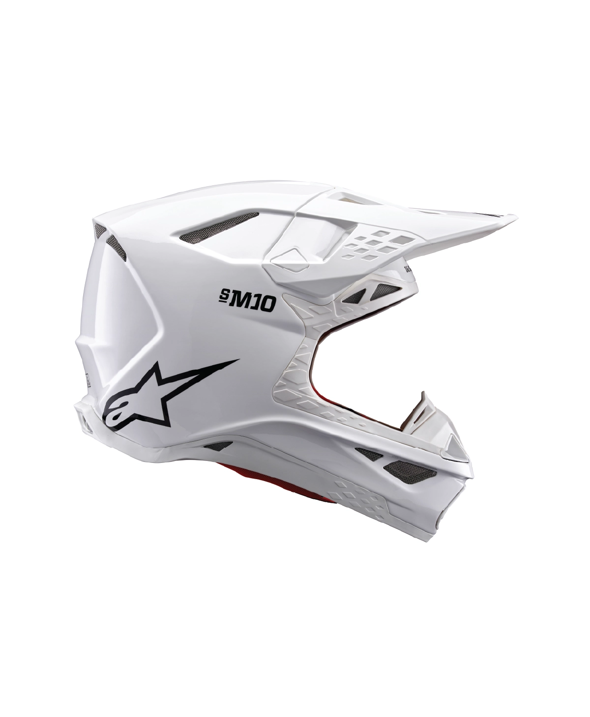 The goal of the Alpinestars Supertech family of helmets was to create the most advanced, protective, and performance-enhancing helmets possible for riders worldwide. With the S-M10, Alpinestars’ Helmet Development team engineered the helmet to offer the perfect blend of excellent ventilation, and unsurpassed comfort, to create a helmet with the lightest weight possible, all without compromising on any other front.The S-M10’s design offers a smooth, attractive, aerodynamic profile which is streamlined and free of any external channels and features that might act as a load point in an impact or compromise the overall integrity of the helmet’s construction. The surface curvature promotes reduced friction on impact, allowing deflection and the most efficient transfer of energy to protect the rider’s head from direct force to the skull and referred to the neck and spinal column.