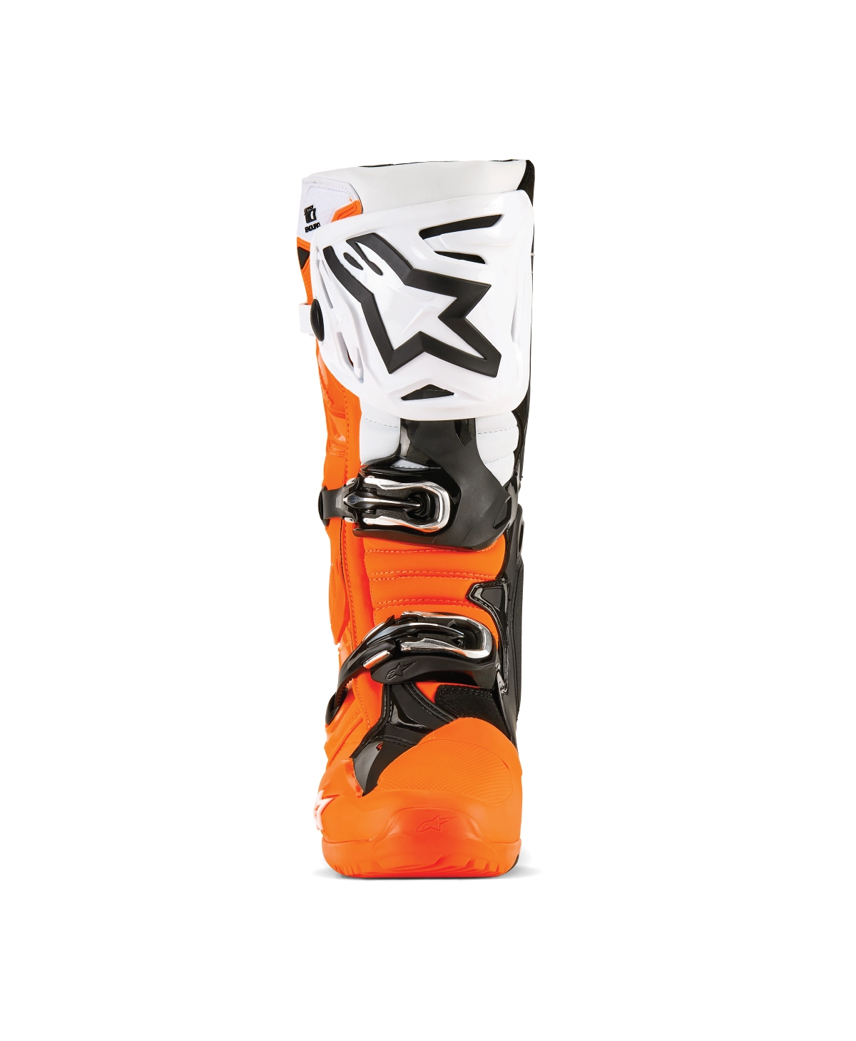 • The Tech 10 Enduro has a Frontal Flex Frame, a complete and seamless flexion control system, from the foot shell all the way up to the shin plate, offering high-performance double motion control to prevent over-compression and hyper-extension. Incorporated into the frontal outer chassis of the boot and working in conjunction with Alpinestars unique, patented, dual torsion bar inner ankle brace, the Frontal Flex Frame is engineered to ‘float‘ freely between the upper and lower boot, acting as a shock absorber by distributing energy across the boot frame while controlling forward and rearward flex, progressively releasing force which dampens and absorbs impact energies.